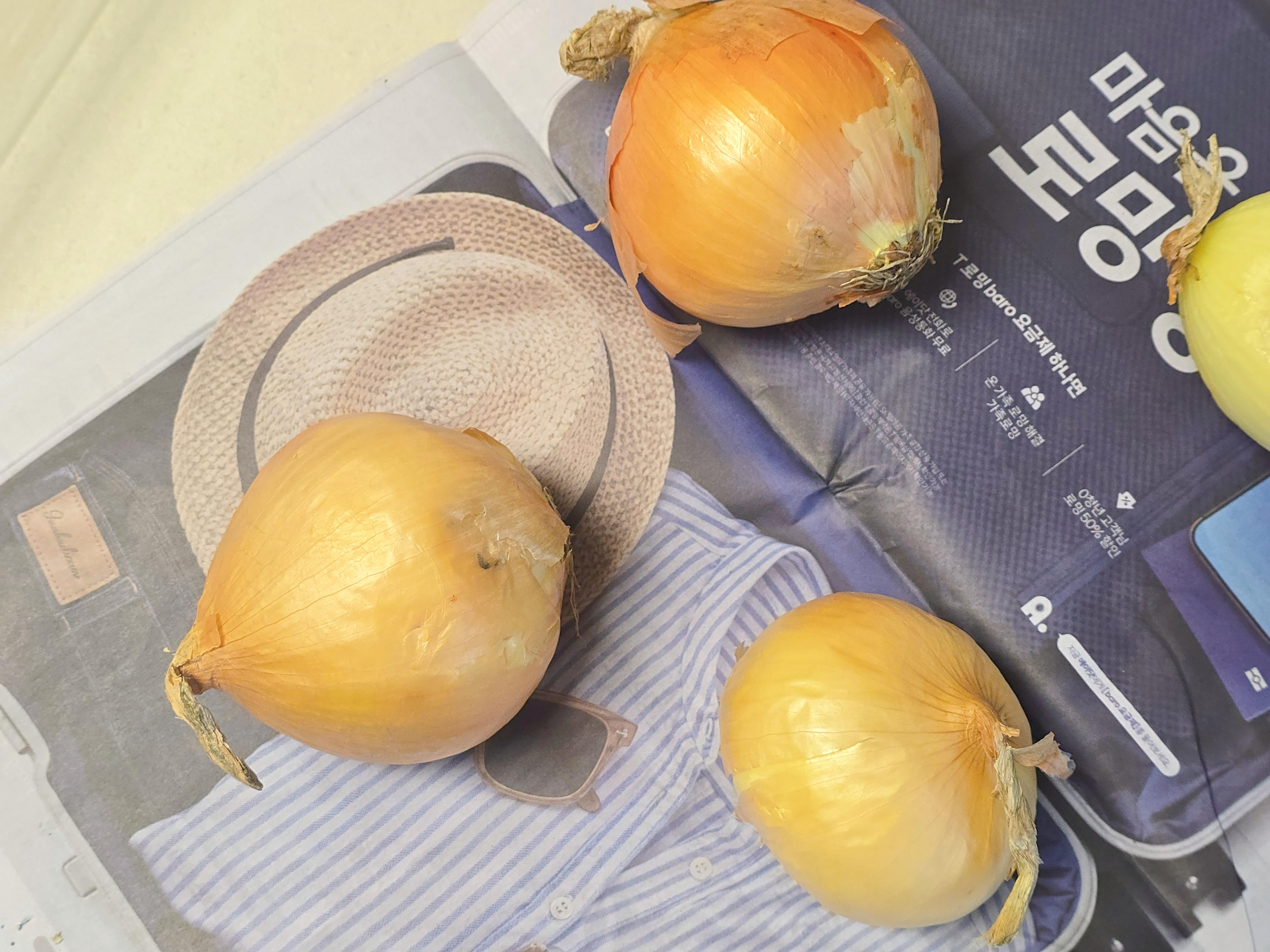 구조상 매달아 두기가 어렵다면, 양파망에서 양파를 다 꺼내서 서로 닿지 않게 펼쳐두는 게 안전합니다. 평평한 박스 바닥에 신문지를 두껍게 깔고 그 위에 양파를 띄엄띄엄 올려두는 거죠.